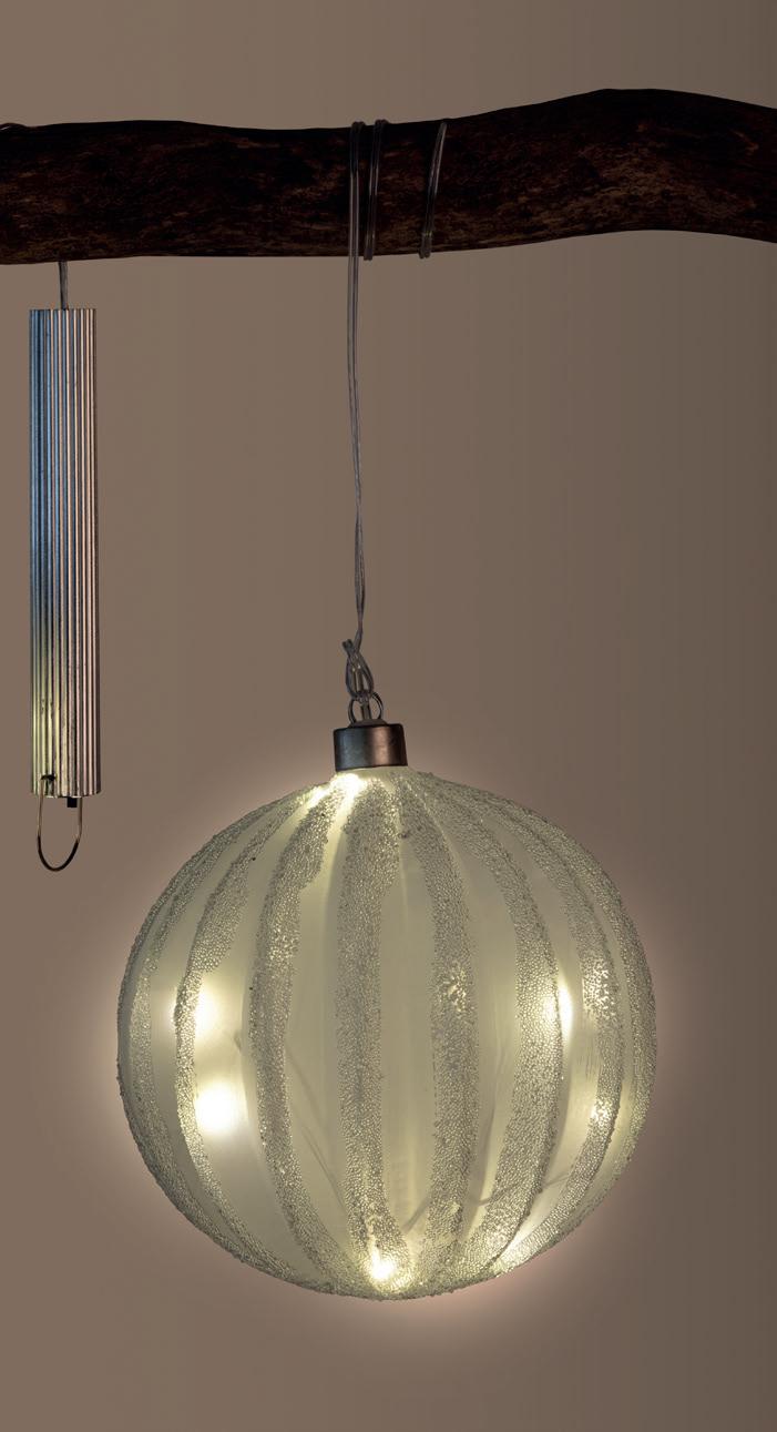 Hochwertige, von Hand gefertigte Aluminium- drahtkugeln mit eingeflochtenen, warm-weissen LED. Perfekte Beleuchtung oder Dekoration für Drinnen und Draussen. Auch im ausgeschalteten Zustand ein Blickfang. Schön als einzelne Kugel oder besonders dekorativ als Blickfang im Set. Zuleitung von 5 m, mit schwarzem Kabel Art .Nr. 226 480 01 Mit 50 LED, Mass (Ø): 30 cm 119.00 nur 64.90
