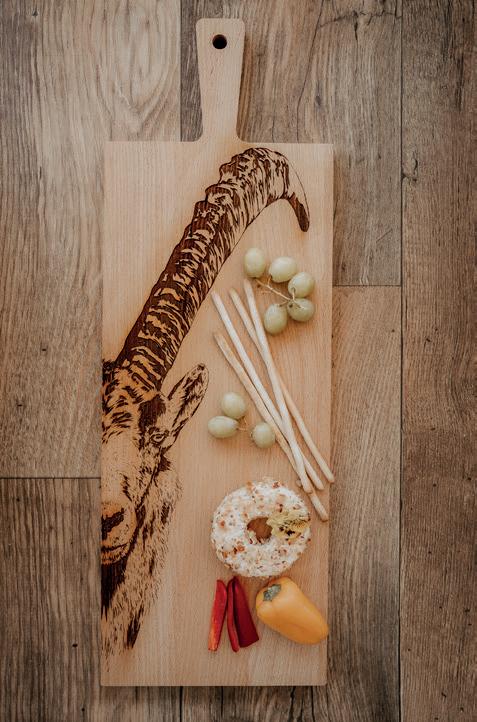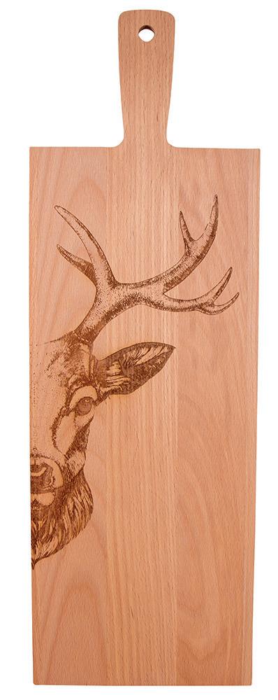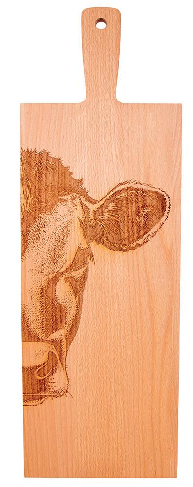 Planche à découper et de service solide en bois de hêtre avec une belle gravure au laser. Bois allemand issu de la sylviculture durable, gravé avec amour en Suisse. Disponible dans les motifs: cerf1, vache2, capricorne³.