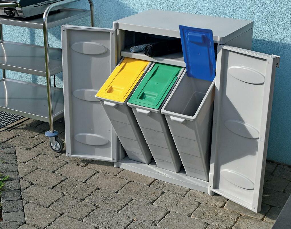 Le composteur est rempli via le rabat coupe-vent sécurisé. Dans un compostage bien ventilé, le travail est particulièrement rapide. Le compost fini peut être enlevé facilement en utilisant les grands rabats. Dimensions (L×l×h): 79×79×110 cm