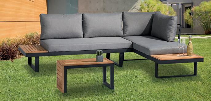 L’ensemble de sièges en aluminium thermolaqué anthracite combiné au bois d’acacia FCS est très confortable et dispose d’un design moderne. Grâce à leur revêtement hydrofuge, les housses de coussin de couleur gris oléfine sont faciles à entretenir et lavables jusqu’à 30° C. Le set de 13 pièces se compose de: 2× élément de 2 places à droite/à gauche avec chacun 1× coussin d’assise et 2× coussin de dossier, dimensions (L×l×h): 175×78×70 cm; 1× élément d’angle avec 1× coussin d’assise et 2× coussin de dossier, dimensions (L×l×h): 78×78×70 cm; 1× table, dimensions (L×l×h): 70×70×41 cm. Poids: env. 62 kg, hauteur d’assise: 45 cm, dimensions complètes (L×l×h): 253×253×70 cm Art.No. 230 674 01 2290.00 seul. 999.00* *Frais de transport de CHF 79.00. Pas de ramassage en magasin possible. Offre sans décoration.