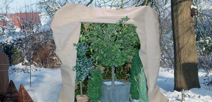 Très grande housse pour faciliter l’enfilage. Grâce aux deux fermetures éclair et au cordon de serrage, la housse est rapidement prête à l'emploi et protège vos plantes du froid.