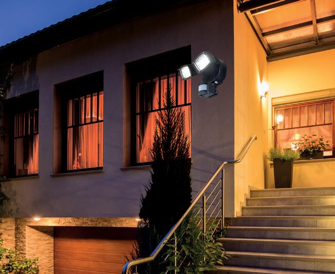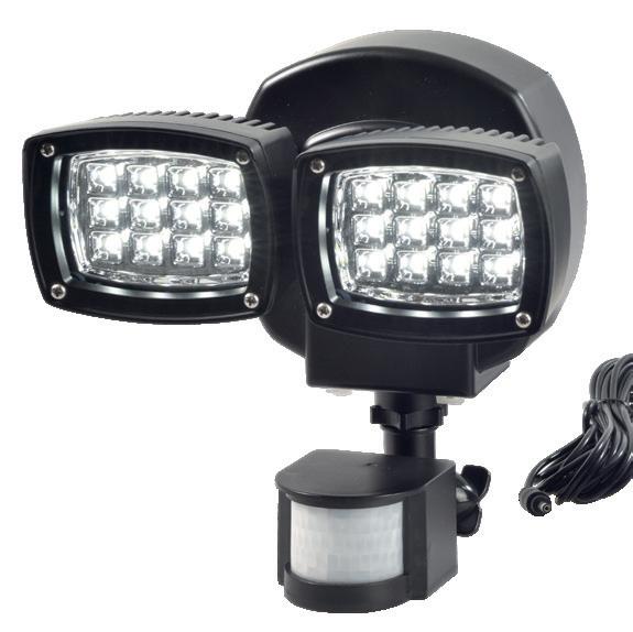 Ideal für Hauseingänge, Garagen, Hausecken, Einfahrten und Schrebergärten. Zwei unabhängig bewegbare Leuchtköpfe mit 24 LED. Erfassungsbereich Bewegungsmelder