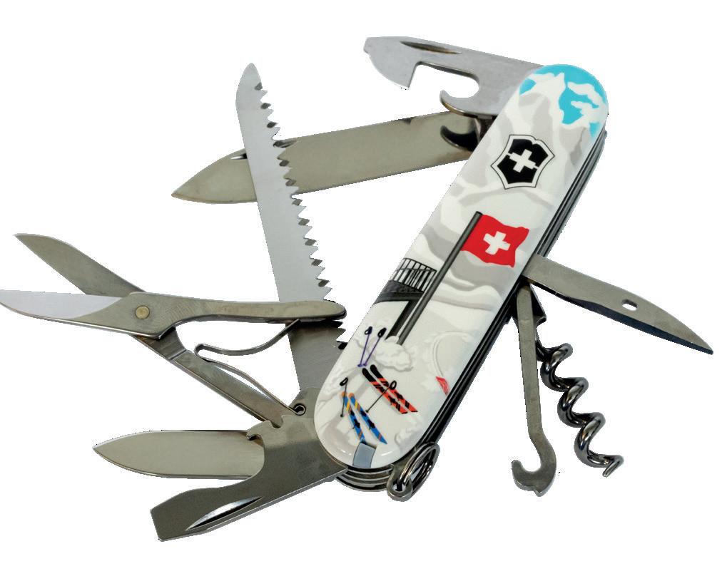 Das legendäre Offiziers-Taschenmesser Huntsman in einer exklusiven Version, speziell nur für Keller Fahnen mit schönem Wintersujet gefertigt. 15 Funktionen. Gewicht: 97 g,