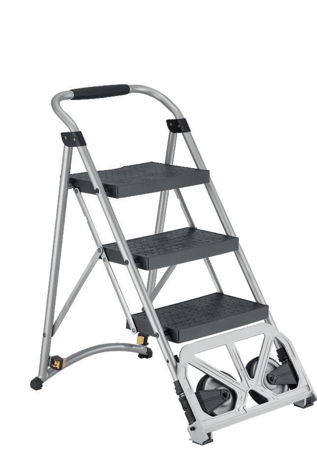 Vielseitiger Transportwagen inkl. eingebauter Trittleiter. Max. Tragkraft: 135 kg, Masse Wagen (L×B×H): 49×40×108