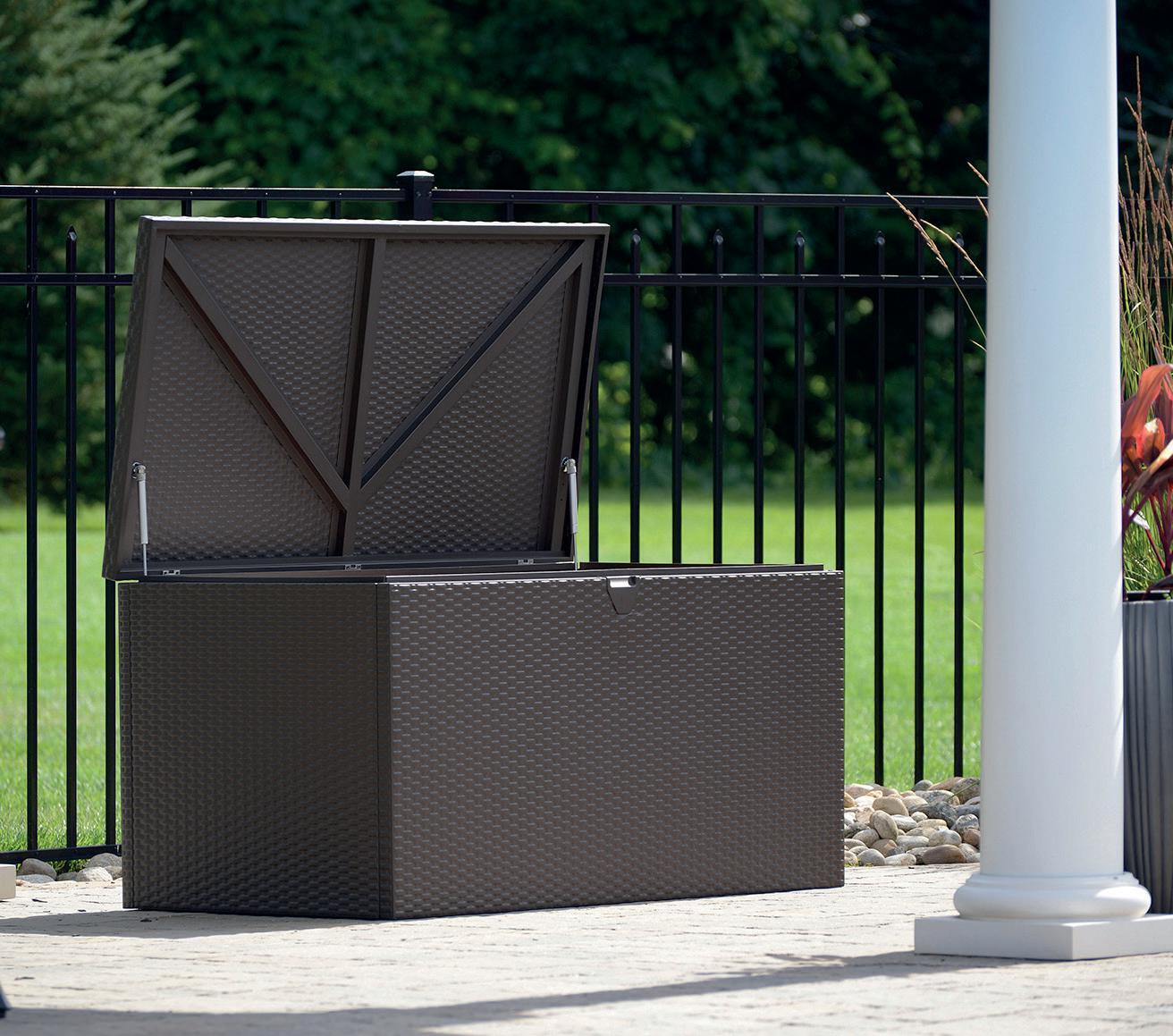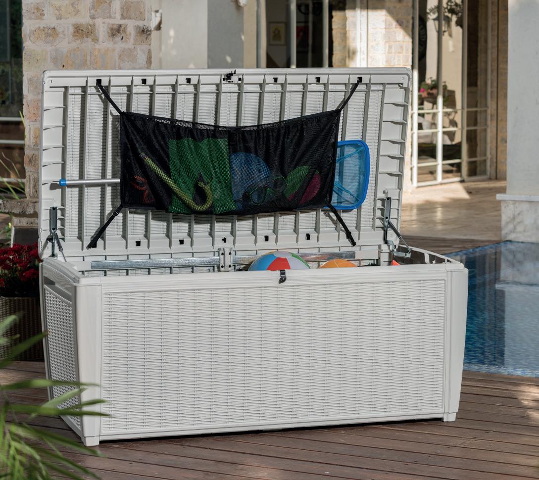 Des coffres de jardin multifonctionnels dans un bel aspect rotin avec beaucoup d’espace de rangement, qui marque des points avec une capacité de 511 litres. Le coffre peut également être utilisé comme siège. Avec mécanisme d’ouverture automatique intégré, filet de couvercle et panier en filet inclus. Elle est résistante aux intempéries et aux UV, dispositif de fermeture incl. (serrure excl.), montage simple, dimensions (L×l×h): 145×73×64 cm.
