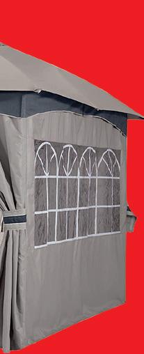 Der pulverbeschichtete, stabile Rahmen hat eine besonders schöne Oberflächenstruktur. Von den 4 Seitenwänden sind 2 mit grosszügigen Panoramafenstern ausgestattet. Die Seitenwände lassen sich bequem über die Schienengleiter im oberen Träger zur Seite schieben, um somit eine ganze Seite zu öffnen. Mit einem Klettverschluss kann man die Seitenwände geöffnet festmachen. Der Eingang kann per Reissverschluss verschlossen werden. Inkl. Werkzeug für die Montage. Aufgestellt werden kann der Pavillon mit oder ohne Fundament (inkl. 8× Heringe). Wenn ein Punkt-Fundament, dann (L×B×H): 30×30×30 cm. Farbe: anthrazit, Masse aufgestellt (L×B×H): 3,25×3,25×2,90 m