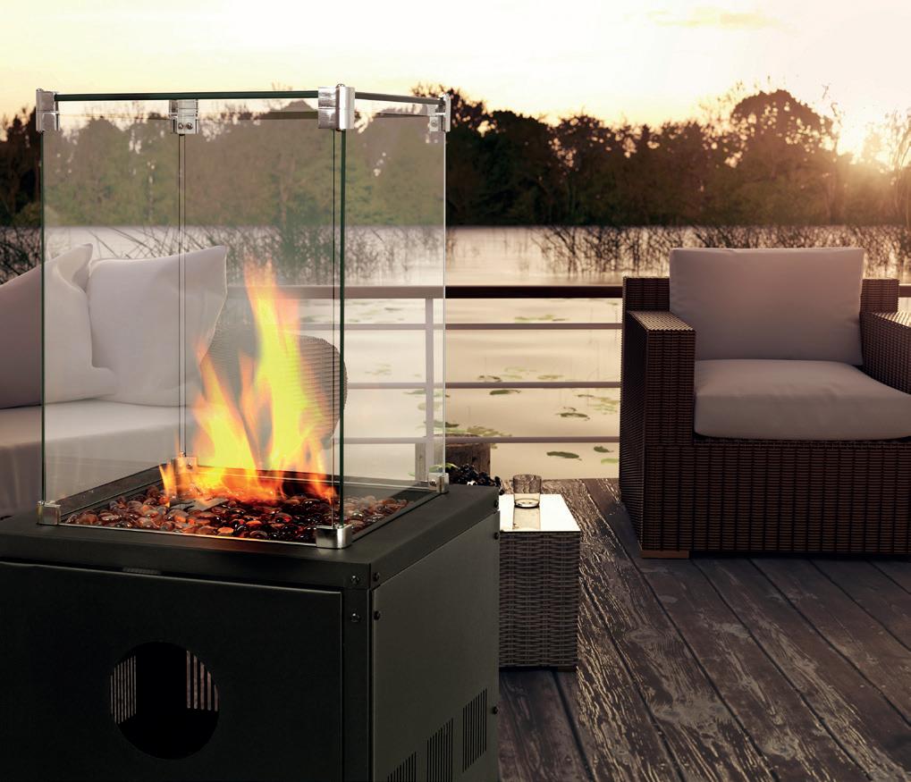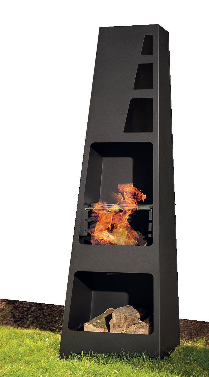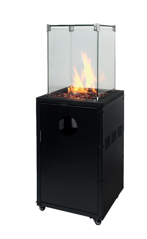 Dieser Gaskamin ist für den ganzjährigen Einsatz im Freien geeignet. Das Stahlgehäuse ist schwarz pulverbeschichtet und es können Flüssiggasflaschen mit einer Kapazität von 5 und 10,5 kg (Butan/Propan) verwendet werden.