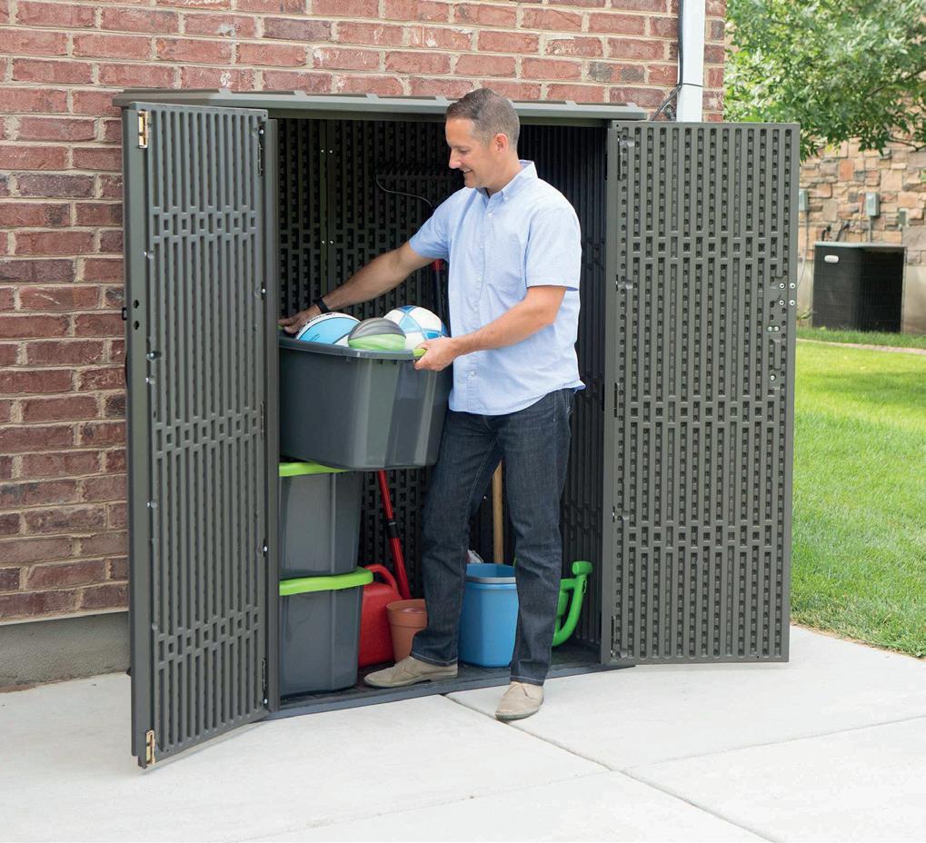 Der kompakte Metall-Geräteschrank «Brentwood» ist die ideale Lösung bei kleinen Platzverhältnissen. Der Schrank besteht aus elektroverzinktem Stahl und verfügt über eine Schiebetür, welche das Verstauen und den Zugang zu den Gartenprodukten vereinfacht. Zusätzlich sorgt das geneigte Dach für einen guten Wasserablauf. Türbreite: 56,5 cm, Masse (L×B×H): 150×120×180 cm