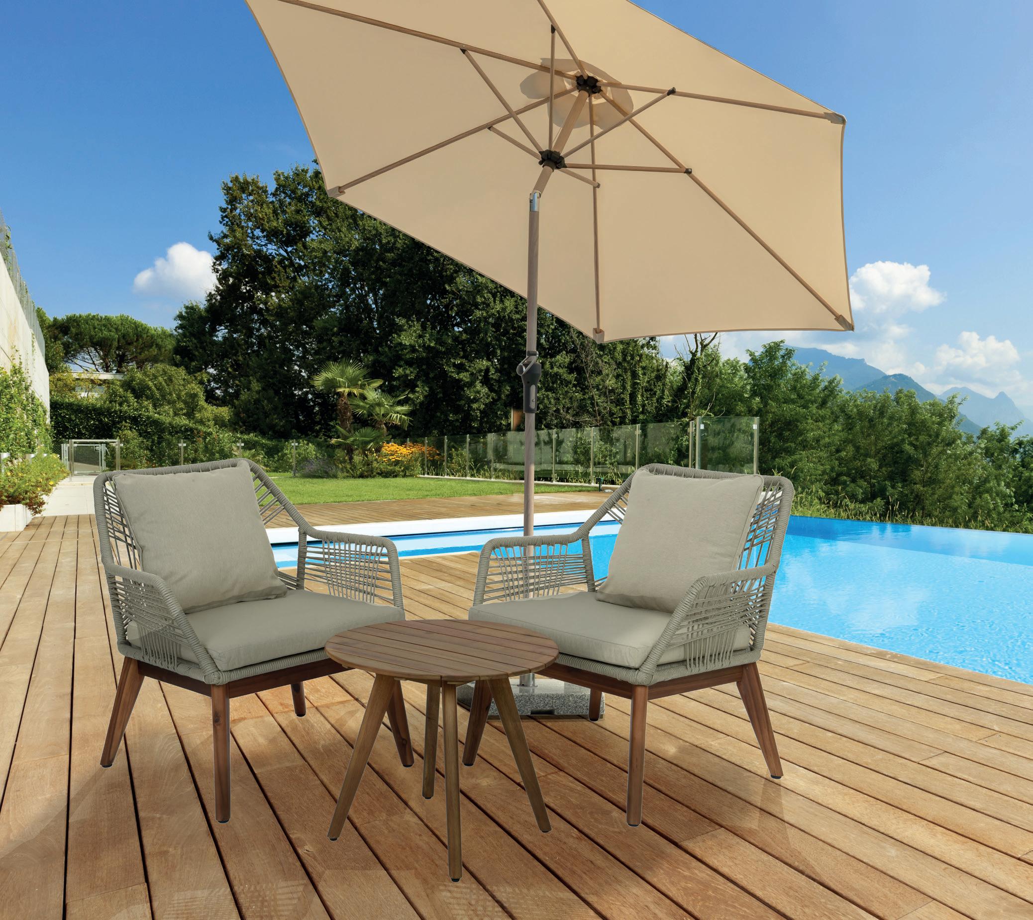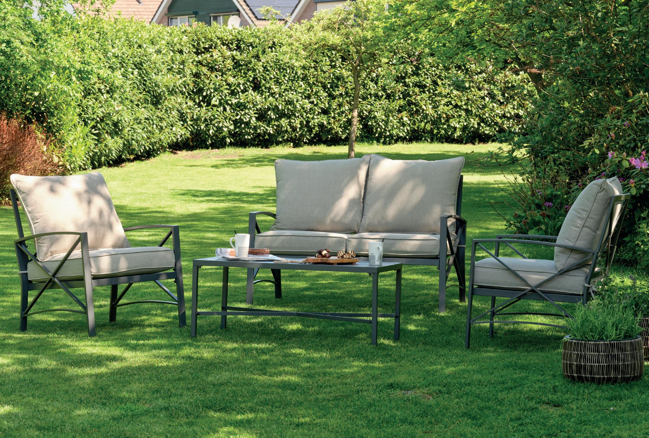 Mit ihren runden Armen und der ergonomischen Rückenlehne hat diese Garnitur eine ansprechende Optik. Inkl. Kissen und einem Aufbewahrungstisch in welchem Sie Ihre Kissen trocken und sauber verstauen können. Aus wartungsarmem und wetterfestem Kunststoff-Weidengeflecht hergestellt. Die 8-teilige Garnitur besteht aus: Masse (L×B×H) 2× Sessel 65×63×74 cm, 1× 2er Sofa 113×65×74 cm, 1× Tisch 58,5×58,5×43 cm. 4 Kissen, Sitzhöhe: 36 cm, Gesamtgewicht: ca. 34 kg