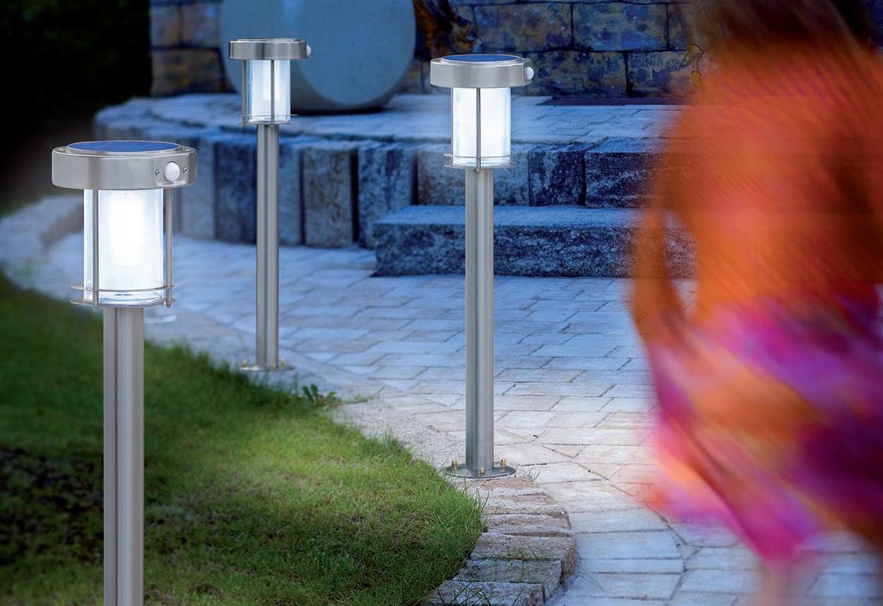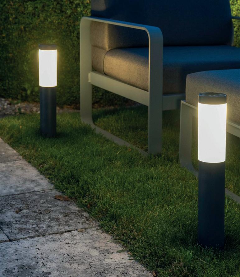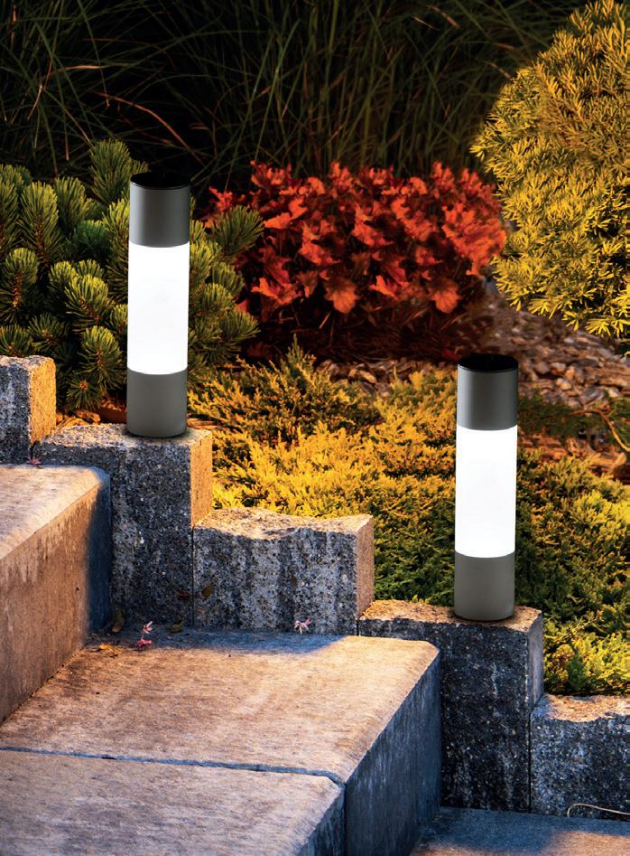 4 | LED Solarerdspiesse, 2er Set Geradliniges Design in dunkelgrau. Säumt Ihre Wege mit wunderschönem Licht oder setzt Lichtakzente auf Balkon, Terrasse oder Garten. Schaltet sich bei Dämmerung für ca. 6 Stunden bei vollem Akku automatisch ein. Masse (Hר): 50×7,5 cm