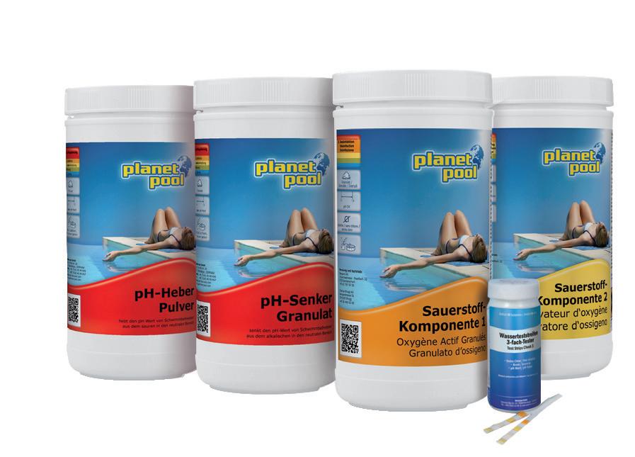 Inhalt: Wassertester, PH-Heber, PH-Senker, Schnell-Chlor, Algizid