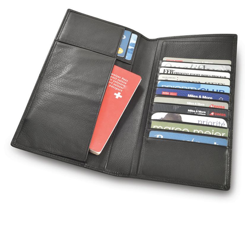 • 14 Einsteckfächer für den Reisepass, Kreditkarten, Ausweise etc.