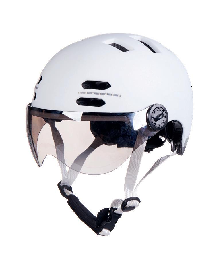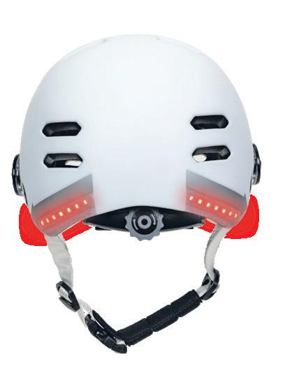 Ein modischer E-Bike-Helm im urbanen Design mit integrierten LEDs, Blinkleuchten, Front- und Rückleuchten. Der Helm ist CE- und EN1078-geprüft, entspricht dem europäischen Standard. Für einen Kopfumfang zwischen 55–58 cm. Art.Nr. 232 294 06