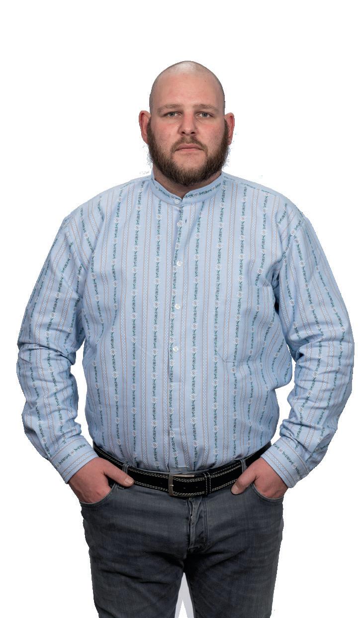 Edelweiss-Hemd, langarm, mit Stehkragen und Brusttasche links. Der Kragen ist halb geschlossen und hat einen gerundeten Saum. Material: 100% Baumwolle, Farbe: hellblau. Waschbar bis 60° C. In den Grössen XS–XXXL erhältlich.