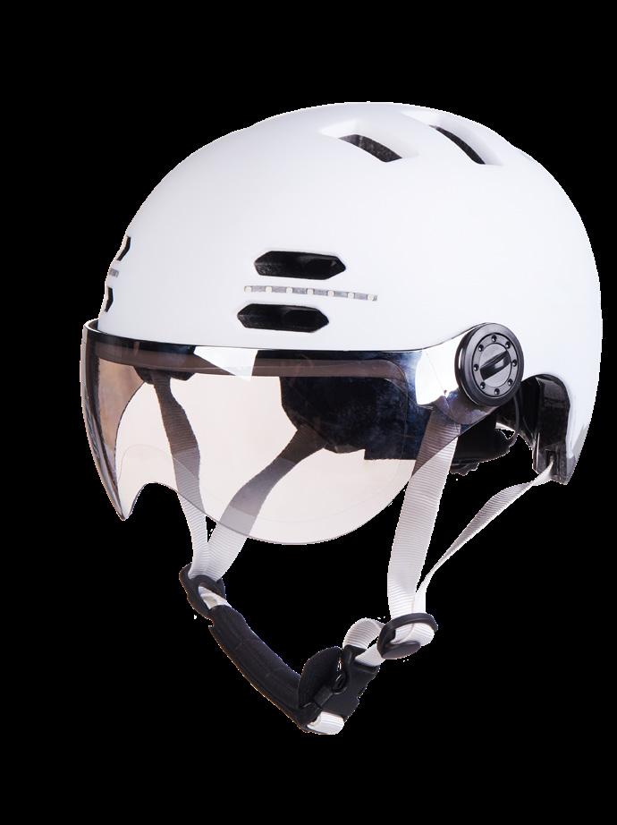 Un casque de vélo électrique élégant au design urbain avec des LED intégrées, des clignotants, des feux avant et arrière. Le casque est certifié CE et EN1078, conforme aux normes européennes. Convient à une circonférence de tête de 55 à 58 cm.
