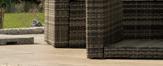 Diese kompakte und einzigartige Sonnenliege besteht aus Polyrattan mit einem Stahlrahmen. Bei Nichtgebrauch kann die Sonnenliege zu einem Würfel zusammengeklappt und platzsparend verstaut werden. Inkl. Kopfkissen. Die Kissenhüllen sind pflegeleicht und bei Handwäsche waschbar. Sitzhöhe: 27 cm, Masse ausgeklappt