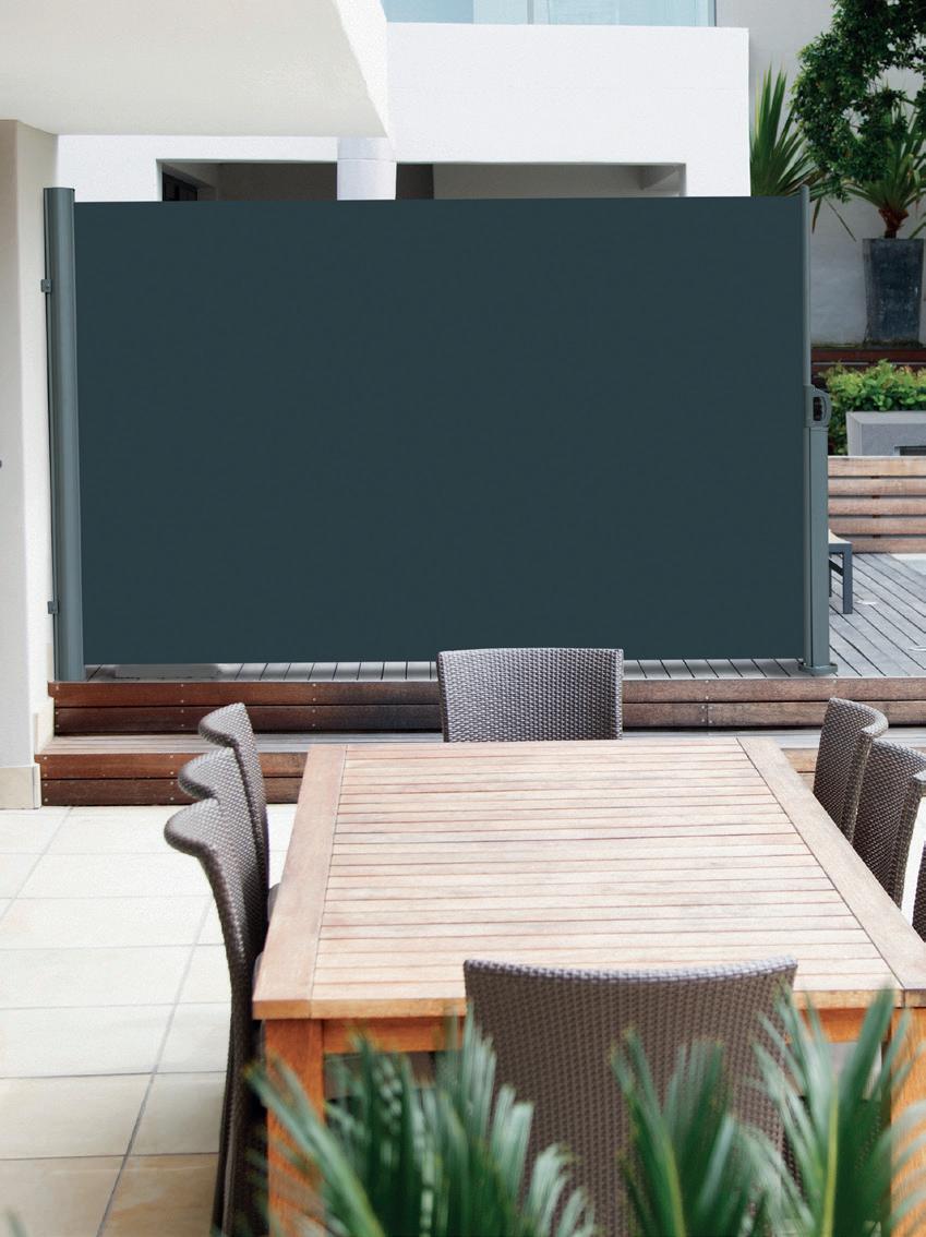 Einfach und unkompliziert an die Hauswand/Boden montiert, bietet Ihnen der Sicht- und Windschutz einen optimalen Bedienkomfort und dauerhaften und stabilen Schutz. Dank zwei Montagemöglichkeiten (Boden- oder Wandbefestigung) ist die Seitenmarkiseflexibel einsetzbar. Gestell aus pulverbeschichtetem Aluminium, Textilgewebe aus Polyester mit PUBeschichtung 280 g/m²