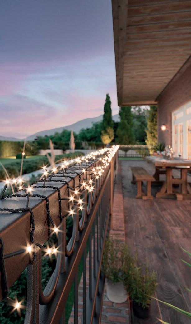 • 100 warm-weisse LED mit Funkeleffekt, Leuchtdauer von ca. 6 Stunden bei vollem Akku