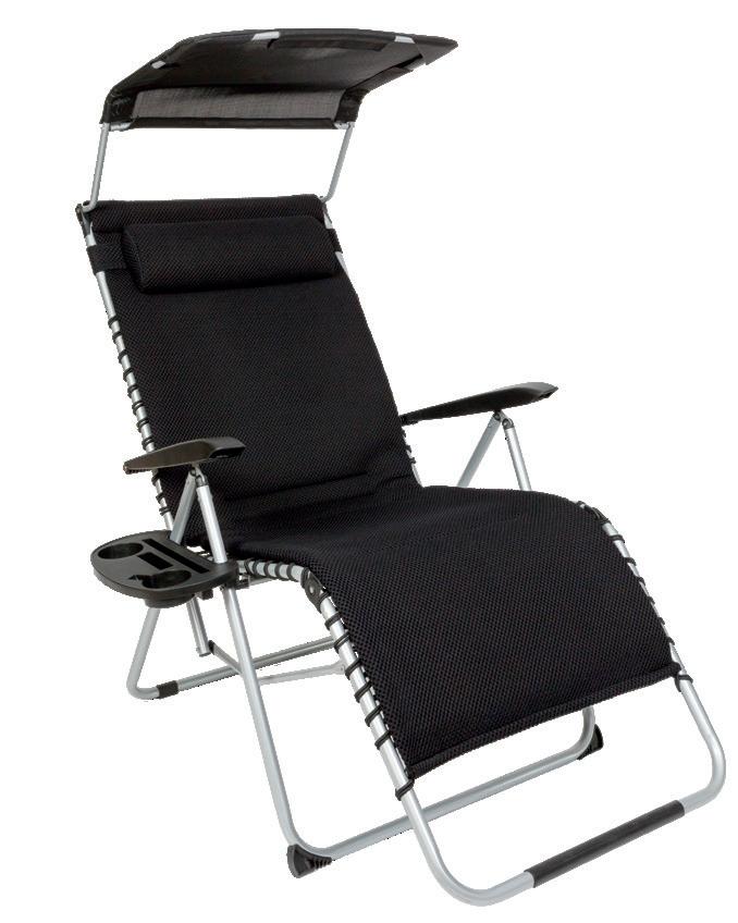 Der Relax-Chair ist als Garten- oder Liegestuhl verwendbar. Inkl. Sonnendach und Getränkehalter. Gewicht: ca. 9,5 kg, Max. Belastbarkeit: 150 kg. Masse