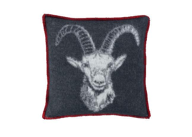 Couverture et coussin en laine au look alpin chic avec ce petit quelque chose en plus. Authentique, brut et pourtant si doux. La grande tête de bouquetin magnifiquement dessinée et bordée d'un liseré rouge attire le regard. Lavable jusqu'à 30º C. Matériaux: 88% laine, 12% coton, remplissage: non-tissé. Poids couverture: 990 g, dimensions (L×l): 180×130 cm. Poids coussin: 500 g, dimensions (L×l): 45×45 cm