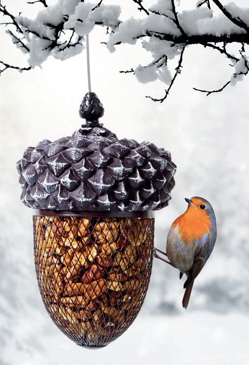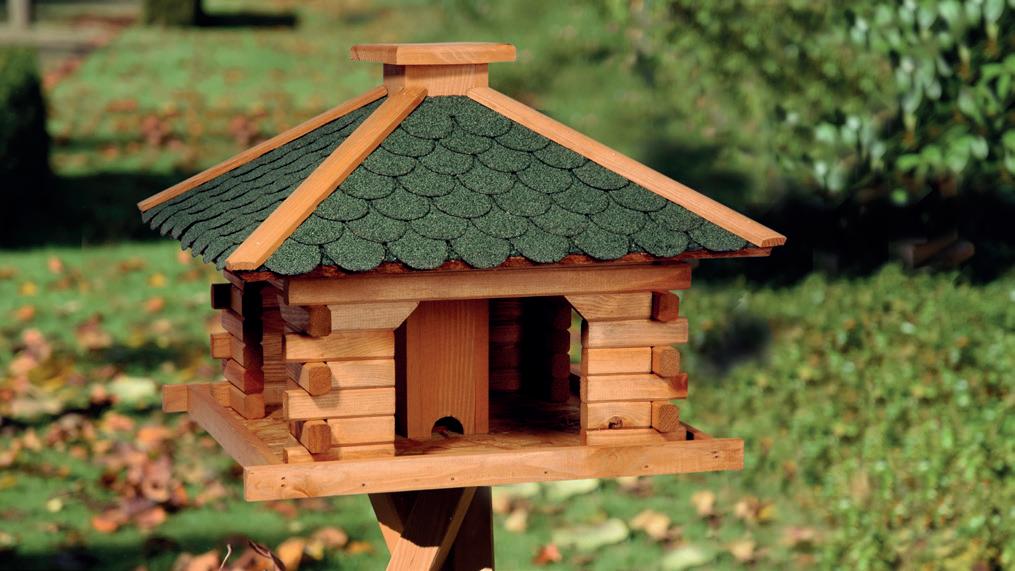 La période à venir, avec peu de nourriture disponible, n'est pas non plus facile pour nos oiseaux domestiques. C'est pourquoi vous trouverez aux pages 22 et 23 de nombreuses maisonnettes différentes ainsi que de la nourriture pour oiseaux afin de les aider à passer l'automne et l'hiver.