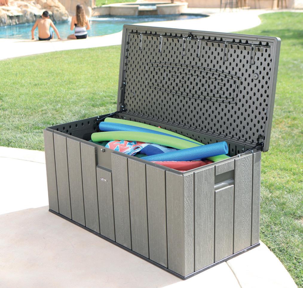Coffre de jardin multifonctionnel de couleur grise/noire, qui marque des points avec une capacité de 340 litres. Le coffre peut également être utilisé comme siège. Elle est résistante aux intempéries et aux UV, ne rouille pas, ne se déforme pas, ne s’écaille pas, dispositif de verrouillage incl. (serrure excl.), montage facile*, capacité de charge