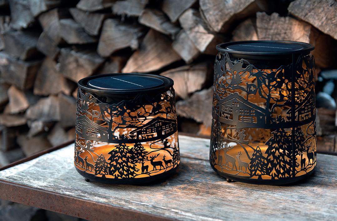 1–17 | Le soir, les lanternes créent un jeu d'ombres fascinant, seules ou en groupe. Avec panneau solaire DUO, fonction de recharge USB et allumage automatique au crépuscule (jusqu'à 6 heures d'autonomie). Couleur de la lumière: blanchechaude ou sunny-chaude.