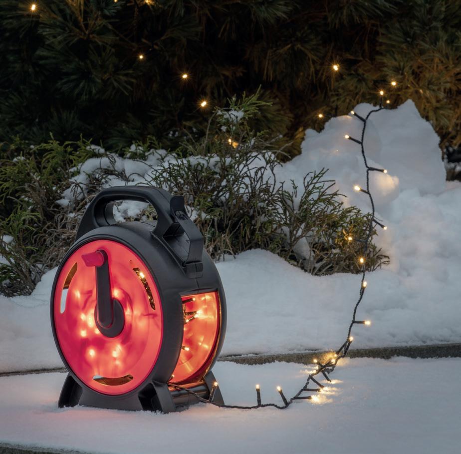 • Guirlande lumineuse dans un enrouleur pratique –finis les câbles emmêlés