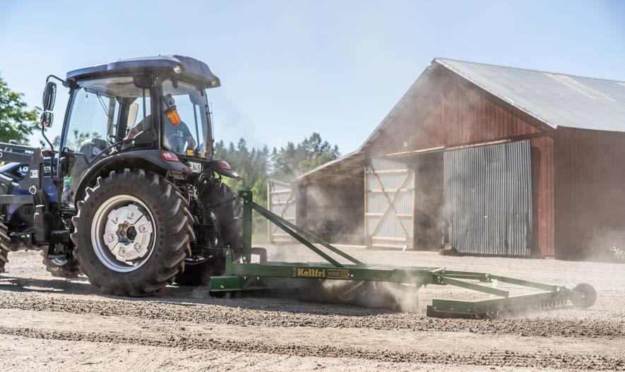 Hjulen justeras 15 cm individuellt vilket gör det enkelt att t ex dra in gruskanter på vägen igen, sladda och jämna till vägar, gårdsplaner och ridbanor etc.