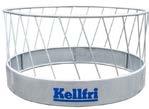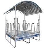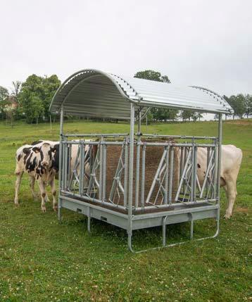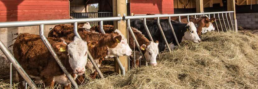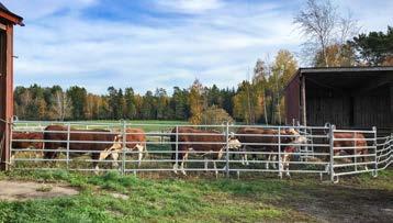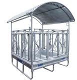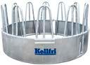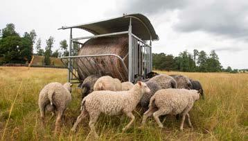 Päätimme jo varhaisessa vaiheessa järjestää lampaille oman ruokinta-aseman, jotta lehmät eivät stressaisi niitä ruokintapaikoilla. Lampaat syövät mielellään kuivaa ja hienoa heinää. Ne eivät pidä sateessa hapantuneesta heinästä, joten katto paalin päällä on lähes pakollinen, ja tässä häkissä se on. Muita häkin etuja ovat, että se on taloudellinen ja hygieeninen, lampaat eivät syö tallottua heinää ja mahdollisesti pudonnut rehu päätyy keräystasolle. Ostin ruokintahäkkimme Kellfriltä.”