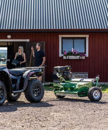 Eteen asennetun leikkurin etuna on myös, etteivät mönkijän renkaat paina heinää lakoon ennen leikkausta. Eteen sijoitetun leikkurin voi asentaa oikean- tai vasemmanpuoleiseksi, jolloin pystyt entistä helpommin leikkaamaan aitojen, puiden tai pylväiden vierestä. Voimansiirto moottorista leikkurille on toteutettu keskipakokytkimellä, jonka johdosta voima välittyy luotettavasti moottoria suojaten.