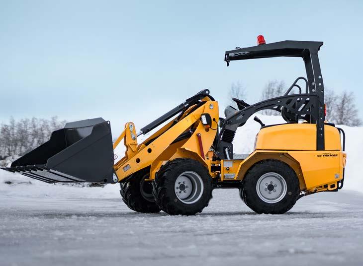 Sterk og kompakt hjullaster, utstyrt med en pålitelig Yanmar-motor, ergonomisk hytte og effektiv varmepakke.