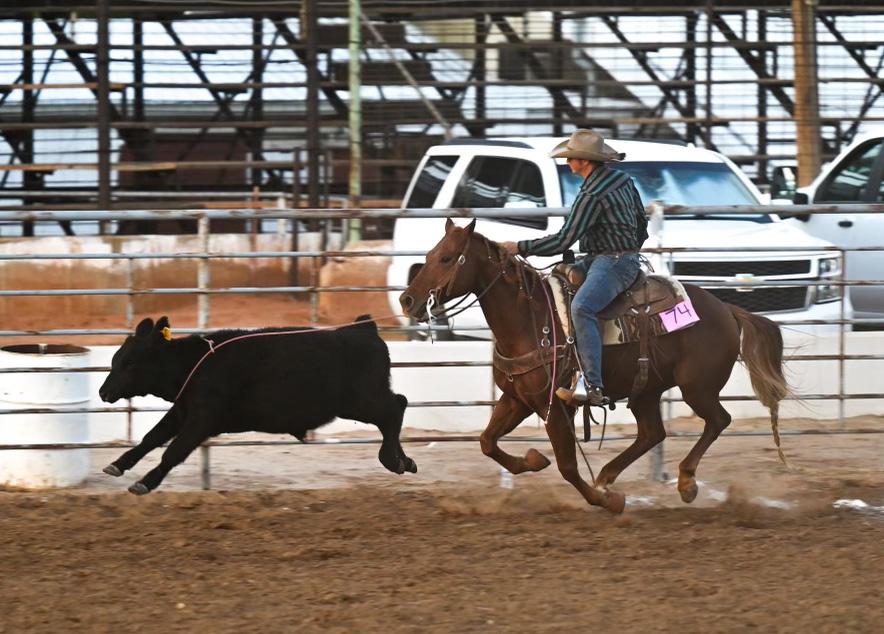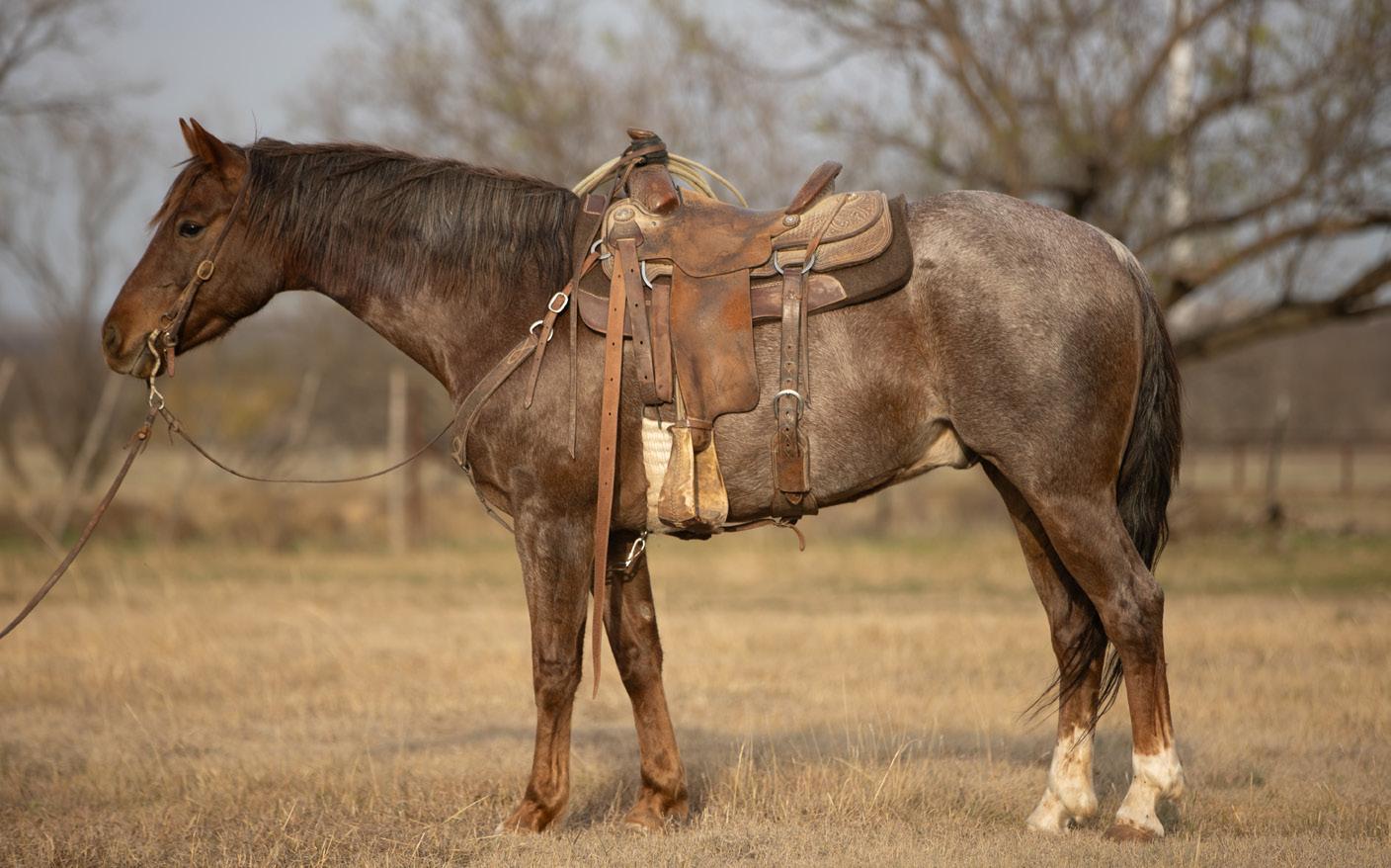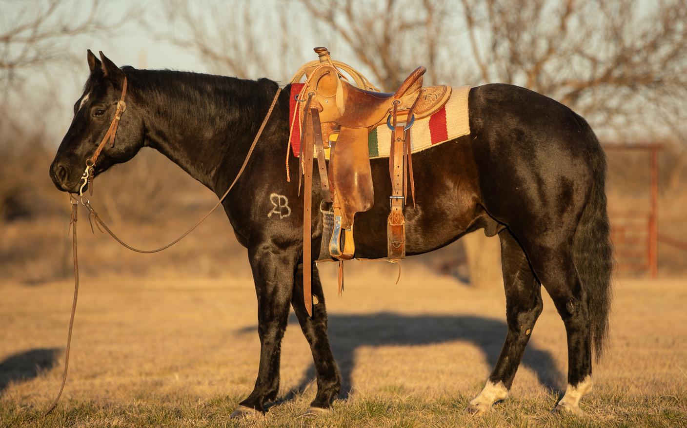 “”Slim” was cool because he was so big but so athletic, quick-footed and cowy. I trained him when I was in college and showed him for the ranch horse team. He definitely got used more than he got trained on and shown. I think it says a lot about a horse that you can do a full day’s ranch work on and still be competitive in that arena with so much competition. I’m glad I got to win a saddle on him, especially at a show surrounded by so many good cowboys and cowgirls. I was also riding Slim when I won Top Hand at the Texas Ranch Round-Up in Wichita Falls in 2021. It probably should have been Slim that won Top Horse instead of me winning Top Hand. He is a special horse.”