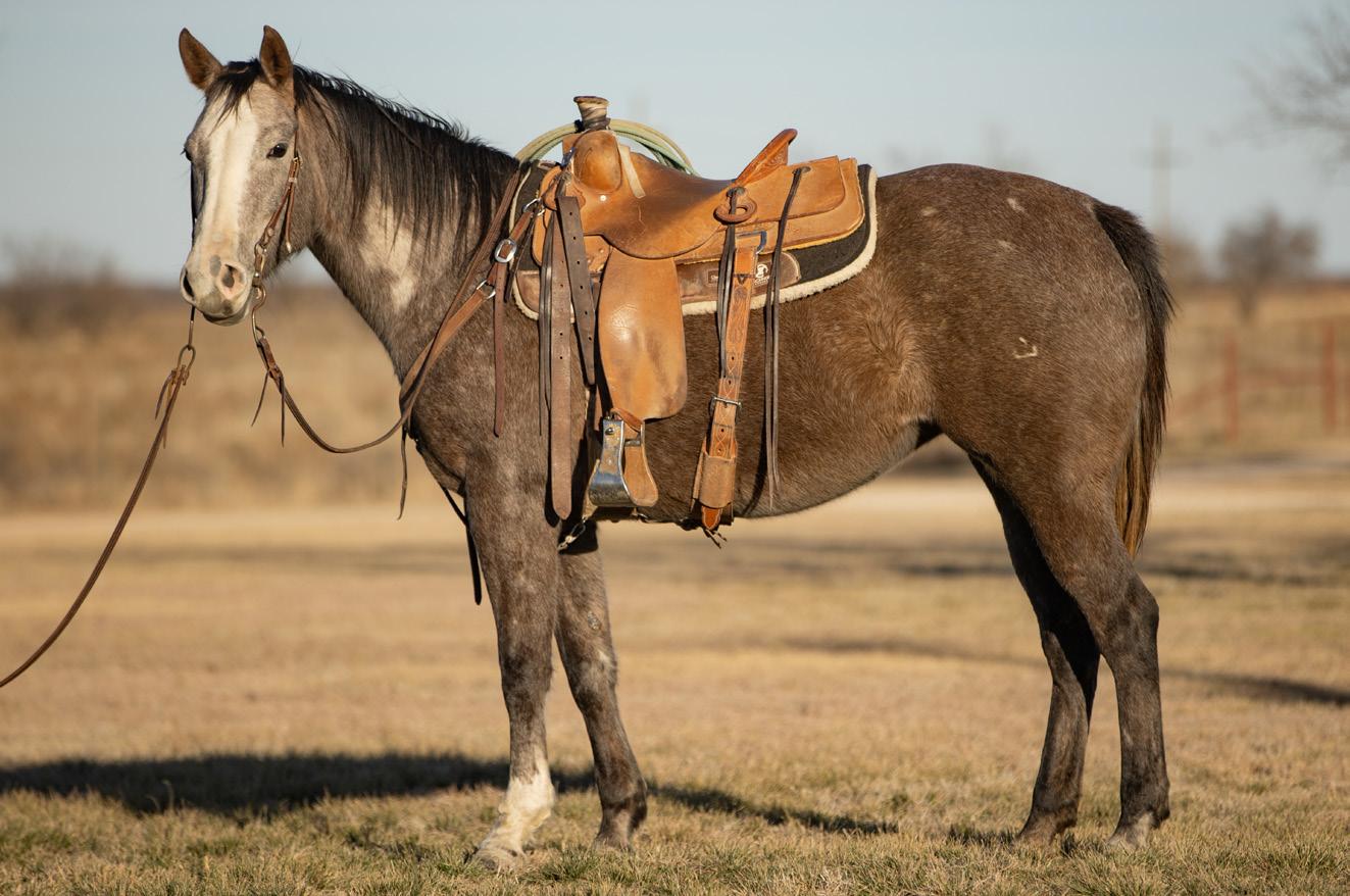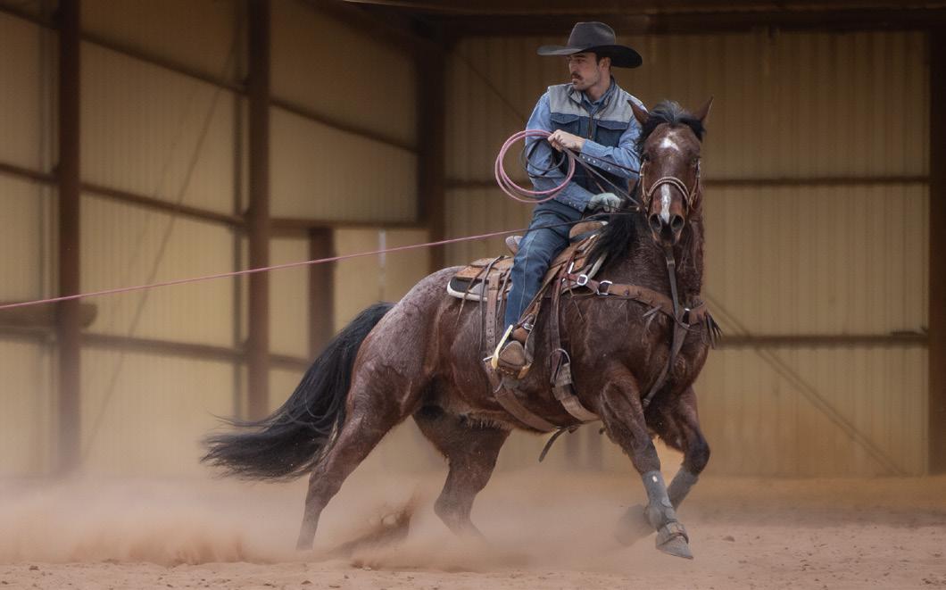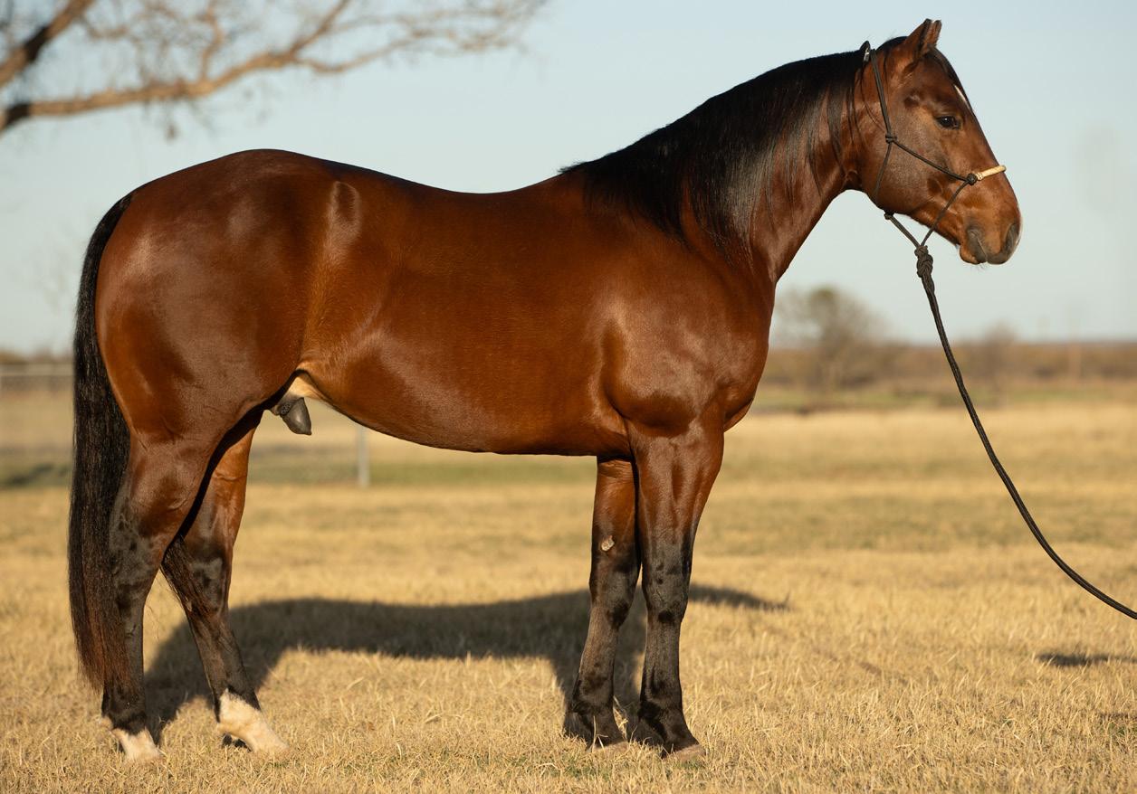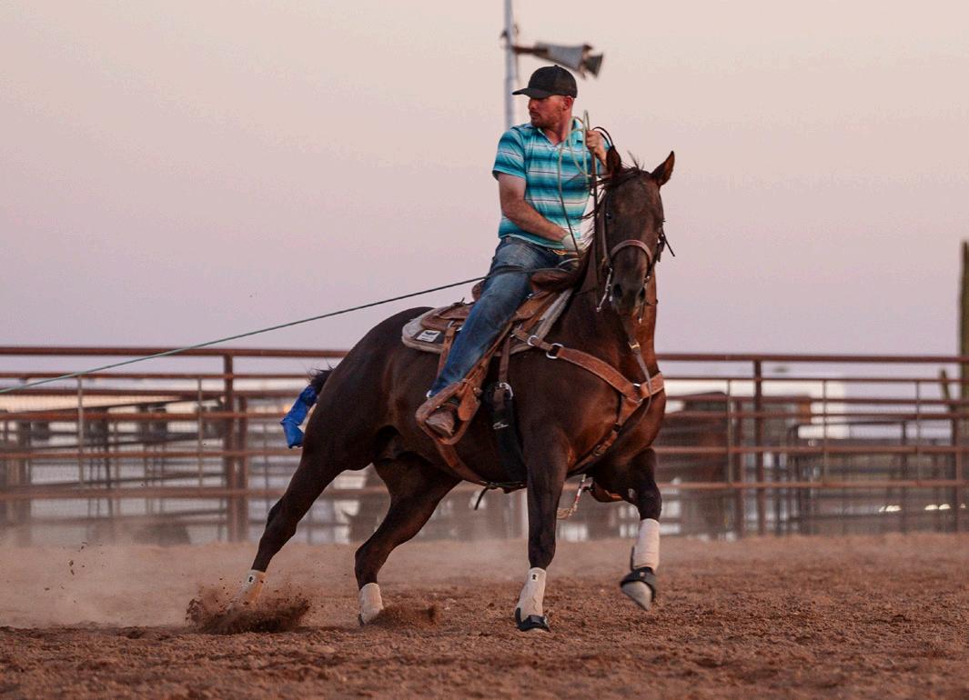 to, and there were a lot of people who saw him that day. He is really goodminded and has a lot of ability. We won have won about $84,000 roping on him, including our #10 heeling win at the 2023 Riata . His oldest offspring is 3 and they seem to be athletic and good-minded like him. He stands to the public and we are excited he is now enrolled in the Riata Stallion Incentive. Guitar Ranches own the mare that he is out of, and they wanted to promote their program with a horse like him that could be out in the public eye.”