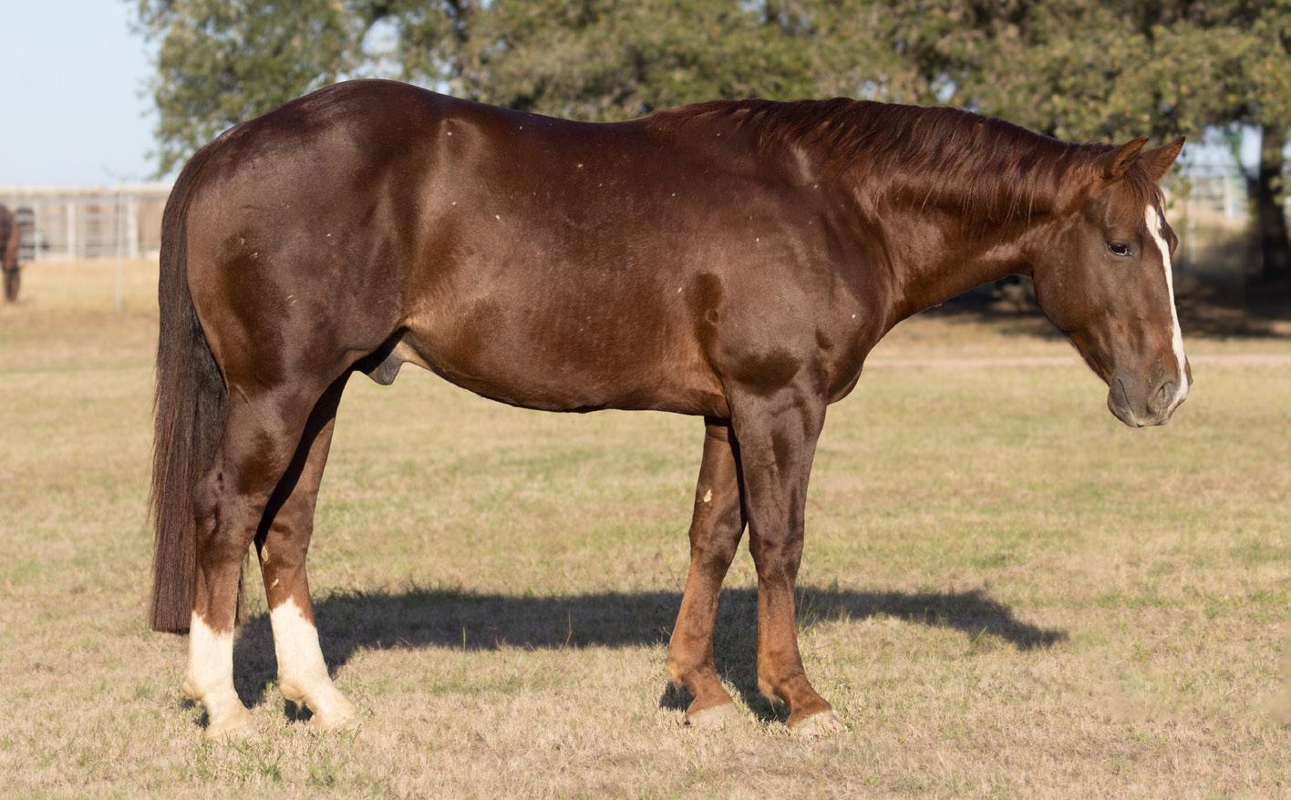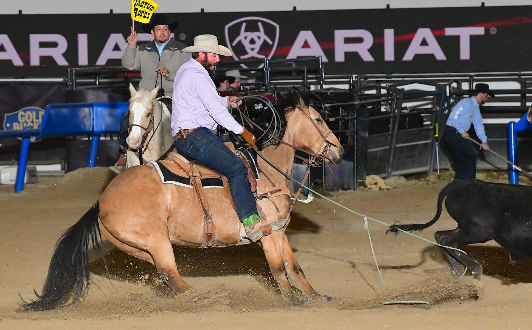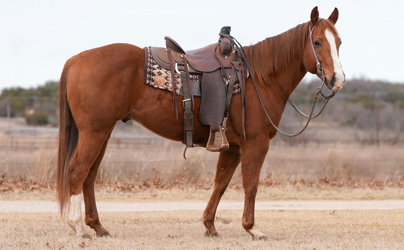 to, and there were a lot of people who saw him that day. He is really goodminded and has a lot of ability. We won have won about $84,000 roping on him, including our #10 heeling win at the 2023 Riata . His oldest offspring is 3 and they seem to be athletic and good-minded like him. He stands to the public and we are excited he is now enrolled in the Riata Stallion Incentive. Guitar Ranches own the mare that he is out of, and they wanted to promote their program with a horse like him that could be out in the public eye.”