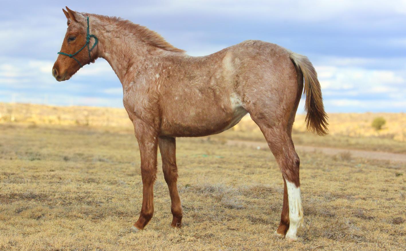 RAB Sho Biz is a 2-year-old filly by Sho Lo (NCHA LTE: $31,600, NCHA Non-Pro Futurity Semi- Finalist), a son of $67 million sire Metallic Cat, and out of money-earning mare Loretta Lyn. She stands at 13.3 hands and weighs 1,000 pounds. This filly is gentle, strong, and overflowing with chrome. She handles well with good manners and is ready to be started under saddle. “Sho Biz” is bound to turn heads with her one-of-a-kind looks.