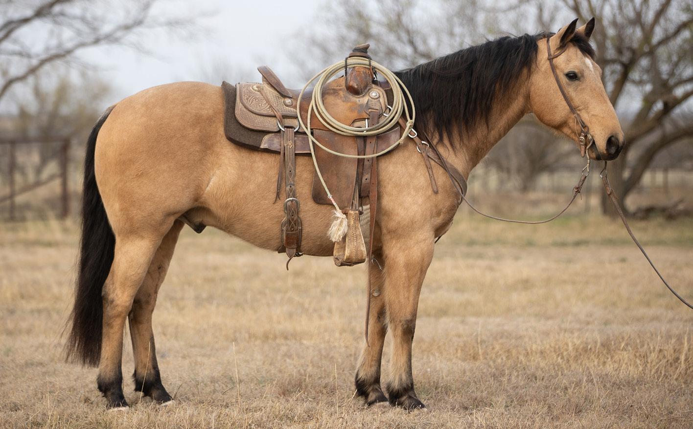 Tule Tom is a super versatile horse that we’ve taken all over to rope and ranch on. From the ranch to the arena, Tom will deliver. This pretty buckskin has won money heeling at World Series Team Ropings, been in Ranch Rodeos, and takes care of us at the ranch. Whether it’s 15 mile gathers, dragging calves, doctoring yearlings in the pasture, Tom can do it all. He’s qualified for the 2025 AQHA Ranching Heritage World Show in the heeling. He is easy to shoe, good to be around and is an easy keeper. Tule Tom stands 14.3 hands and weighs 1,150 pounds. Come try him out before the sale.