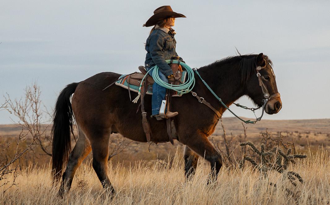 “The R.A. Brown show is my favorite of the year. To win there at a ranch I have always looked up to, in a ranching-focused competition in front of other ranching folks is special. It’s a dream come true to have a horse like “J Noble” that I can doctor cattle on, drag calves on, ranch on, and show at high levels of competition. Not only is he the best cow horse I have ever ridden, he helped me win the title of World’s Greatest Horsewoman in 2022. Now we are riding his offspring, experiencing their natural talent, even making the finals of the Snaffle Bit Futurity on one of his babies. He has about 15 mares and we sell the fillies off the mare and keep the geldings to ride and sell. He is literally the perfect horse for what we do, the perfect package of what we needed at the ranch.
