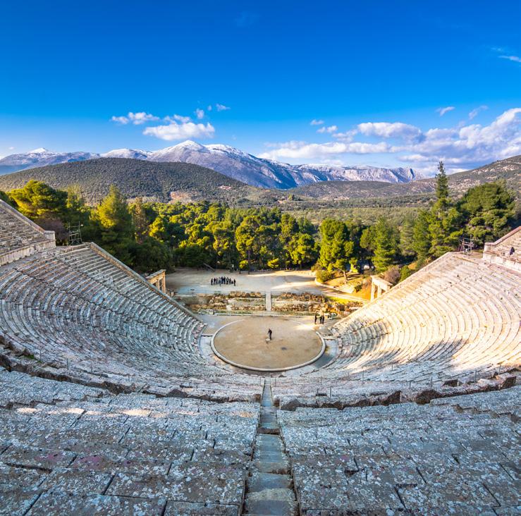 Theatrical performances at ancient amphitheatres, ancient civilisation and archaeological tours with expert guides, Greek Island Cruise and Greek history and culture immersion.