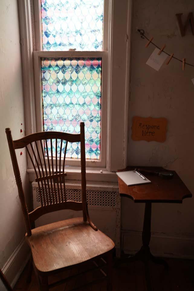 This exhibition encourages participants to reflect on their own connection to spirit, through participatory elements as well as pinhole camera “spirit pnotography,” projection of “spirit photography” images, a soundscape featuring archival clips of Spiritualism seances, and a ceiling of white feathers creating an etheral atmosphere above you.