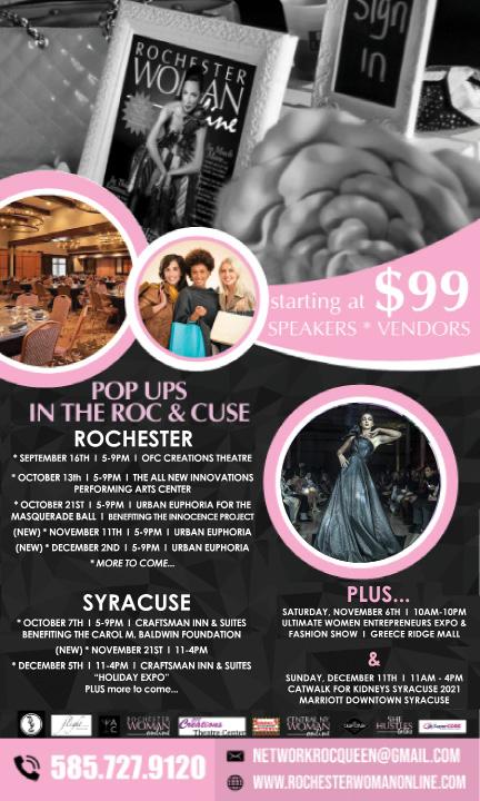 Rochester Woman ONLINE is the premier professional woman’s online publication in the Greater Rochester area. Our feature articles address major topics that interest local women. Each issue includes articles on health, fashion, fitness, finance, dining, lifestyle and personal perspectives, as well as a spotlight on local area women. The electronic magazines are distributed freely through your favorite app store and will be in your inbox electronically by the first week of every month. The publication is available free of charge. Please feel free to contact publisher Kelly Breuer at 585.727.9120 or you can email us at networkrocqueen@gmail.com. Download our current media kit at www. rochesterwomanonline.com