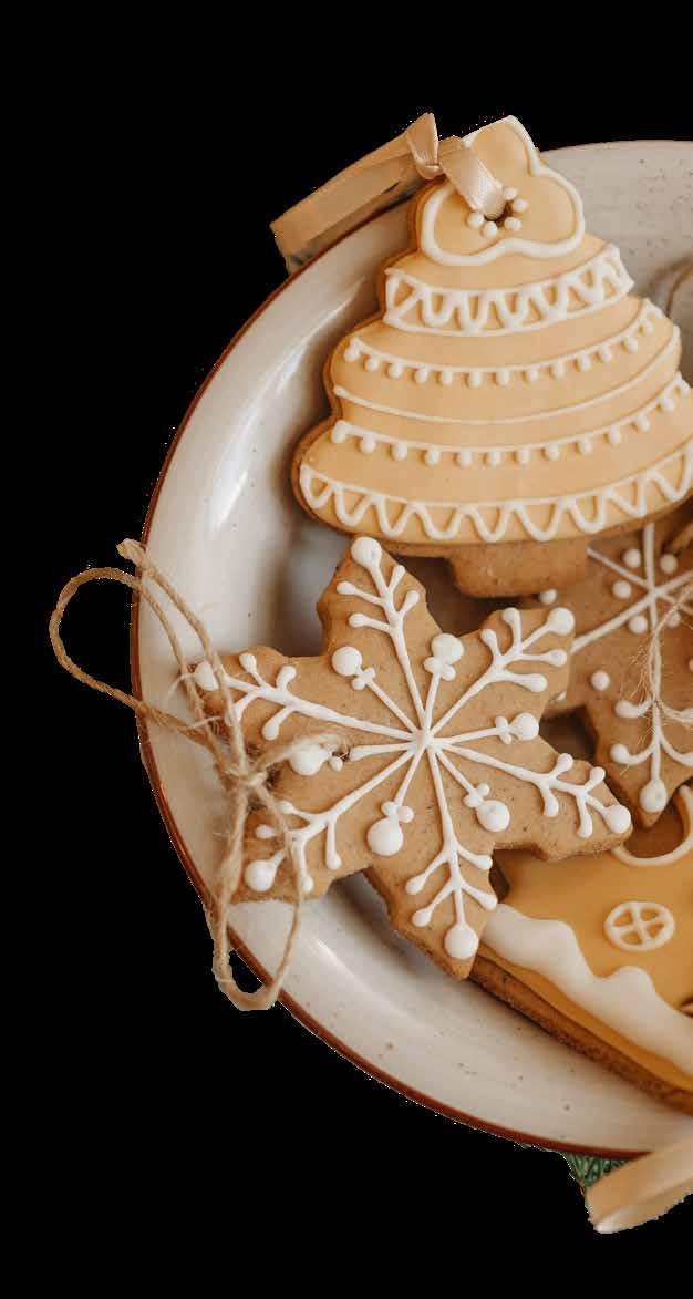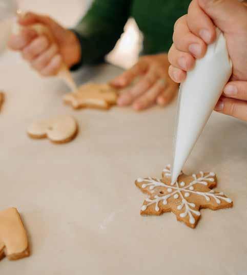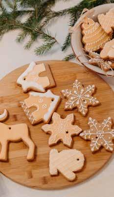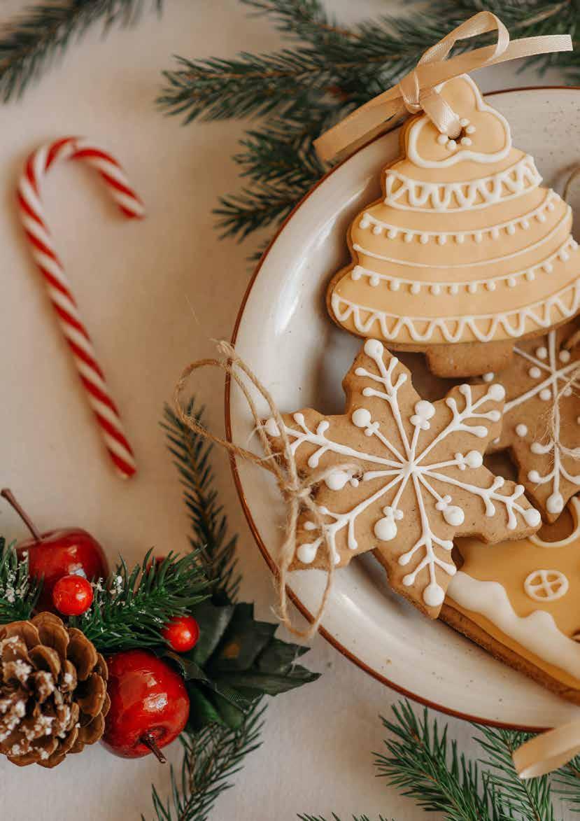 These delightful festive vanilla biscuits not only serve as a charming addition to your Christmas tree decorations but also make for thoughtful endof-term gifts for teachers and friends when packed into festive boxes. Their delicious flavour and decorative appeal add a personal touch to your holiday celebrations, spreading joy and warmth to those who receive them. Whether adorning your tree or sharing them as tokens of appreciation, these biscuits are a delightful way to embrace the spirit of the season and express your festive wishes.