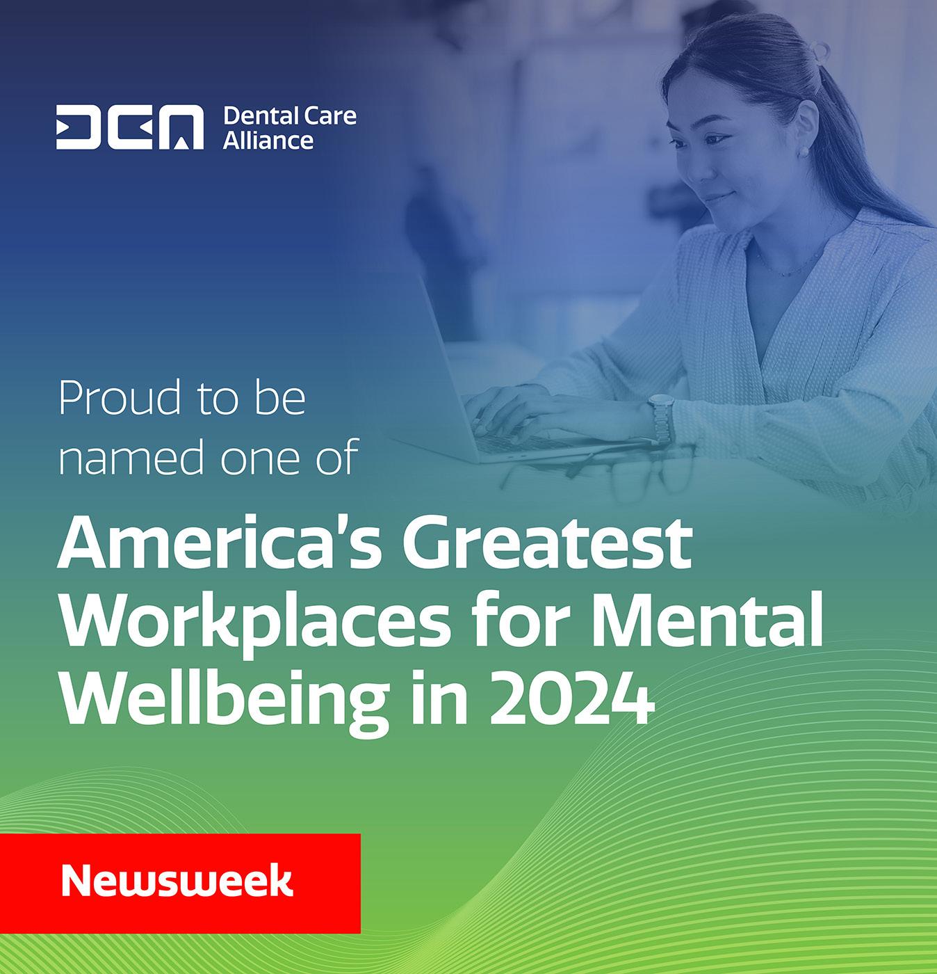 DENTAL CARE ALLIANCE is exceptionally proud to announce that our organization has been named on not one, but three prestigious ‘best of’ lists by Newsweek this year: America’s Greatest Workplaces for Job Starters 2024, America’s Greatest Workplaces for Mental Wellbeing 2024, America’s Best Workplaces for Parents & Families 2024!