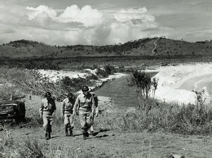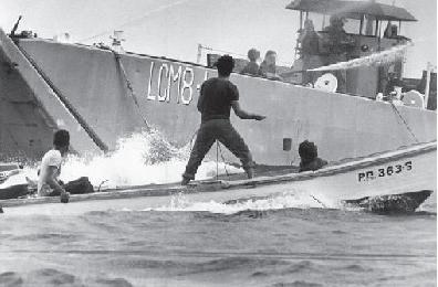 In 1950 a simulated attack on Blue Beach (La Chiva) was staged by a joint effort of Army, Navy, Air Force and Marine forces. The “D-Day”-like maneuvers took two months of preparation by land forces charged with protecting the beach and inland areas from the “assault”. As a result, the topography of La Chiva was substantially altered. Bulldozers scraped the land, digging deep anti-tank trenches and felling palm trees and bushes. Much of the thorny growth, mixed with barbed wire, was wrapped around the palm trunks as defensive barriers. A camouflaged, deeply-dug shelter for 50 caliber machine guns was also placed on the cayo off Blue Beach to disrupt the beach landing from behind.