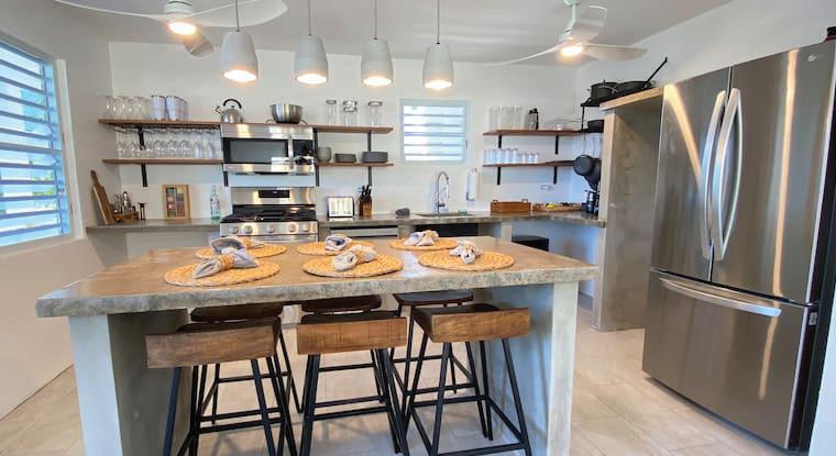 CASA KASANDRA is a titled two bedroom and two-bathroom home nestled on a landscaped nearly two-acre lot in the center of Vieques island in Barrio Lujan. The home is ideally located a few hundred yards from the entrance to the Fish and Wildlife Preserve with thousands of acres of recreational land and many of Vieques’ famous beaches. It is a 5-minute drive to Isabel Segun da, 10 minutes to Esperanza, 1 minute to the Preserve. Casa Kasandra has been immacu lately cared for with recent upgrades made. The house comes