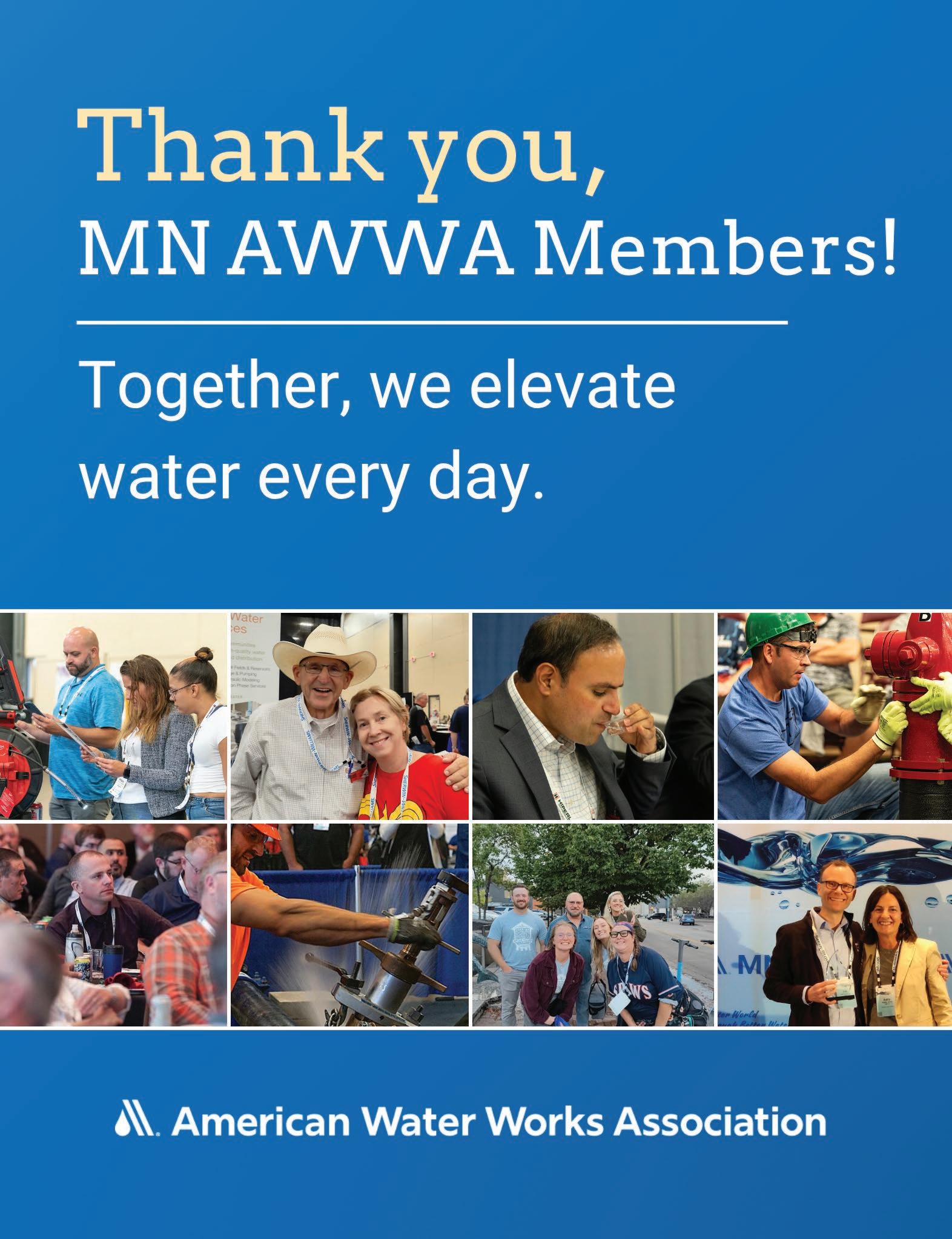 Please consider becoming more involved with your Section by reaching out to a Board member, Section staff, or any one of the many committee volunteers. Thank you all for the work that you continue to do and I’m looking forward to a successful year with the Minnesota Section of AWWA! •