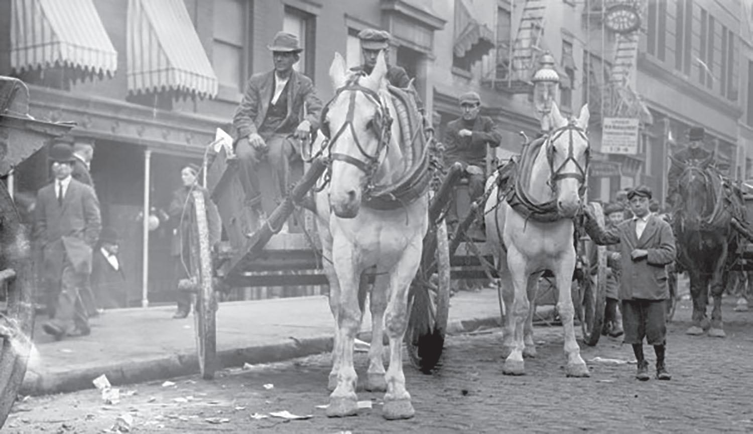 Horse-drawn garbage wagons collecting trash during a New York City garbage strike, Nov. 8-11, 1911. Courtesy: Library of Congress, Prints & Photographs Division, [reproduction number, e.g., LC-B2-1234].