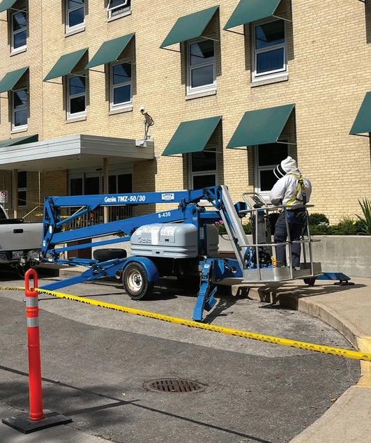 Gilles is able to provide this speedy service for several reasons: because they have all their own equipment, they don’t have to outsource for rentals, and can show up with the full roster of needed equipment right away, including scissor lifts, boom lifts and dump trailers. At all times, Gilles has fl eet of team members driving around the city, ready to answer a call on the spot. “Our system is designed to be able to pivot quickly and react to a call that day, and if the tenant gives permission, we can often enter the residence within the day and start problem solving.”