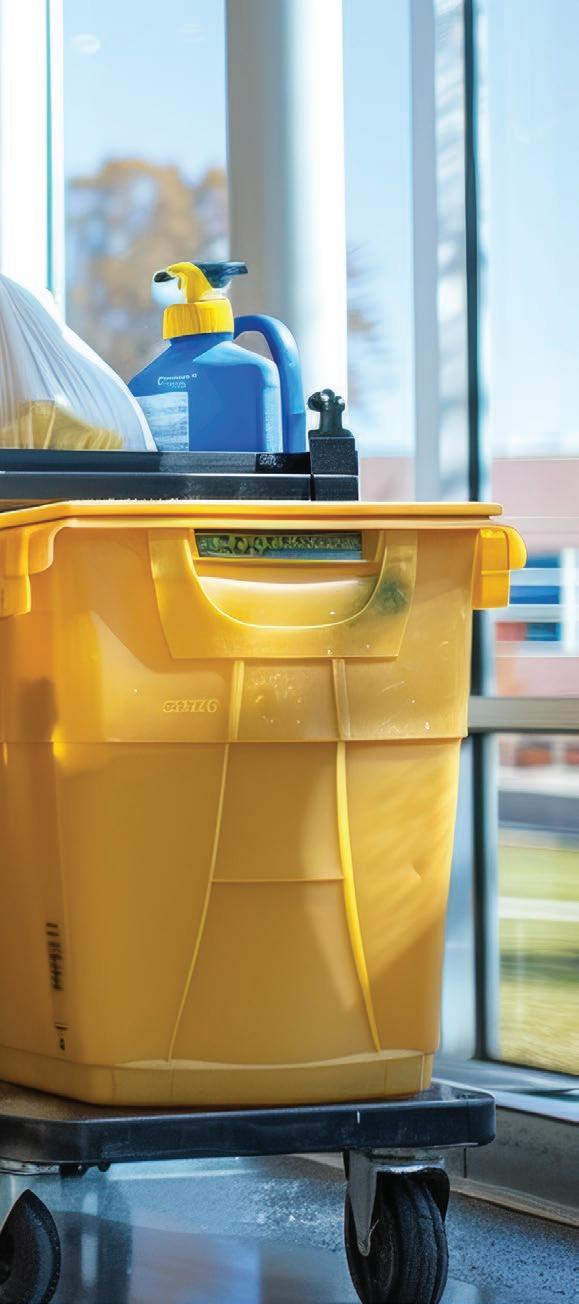 Every property has its own set of challenges, traffi c levels, and tenant expectations. A professional janitorial company should start each partnership with a detailed walkthrough and assessment, developing a tailored cleaning program that meets the unique requirements of the site. Flexibility is