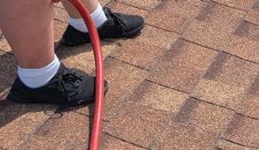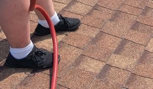 “I remember one particular roof I was inspecting was in that spot of ‘should I treat the roof or not?’ The end result was that I did treat the roof. The customer called me two years later and said his shingles were not going fl at and seemed to be getting worse,” said Huntrods. “I looked at his roof and decided that it would benefi t from another application, which I did at my cost. The shingles look a lot better. It has been four years now, and his roof is still in place.”